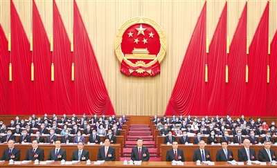 初春的北京,生機(jī)盎然、萬象更新。人民大會堂大禮堂氣氛莊重?zé)崃?,主席臺帷幕正中的國徽在鮮艷的紅旗映襯下熠熠生輝。