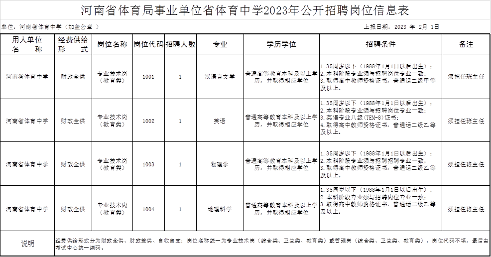 河南省體育中學(xué)2023年公開招聘教師實(shí)施方案