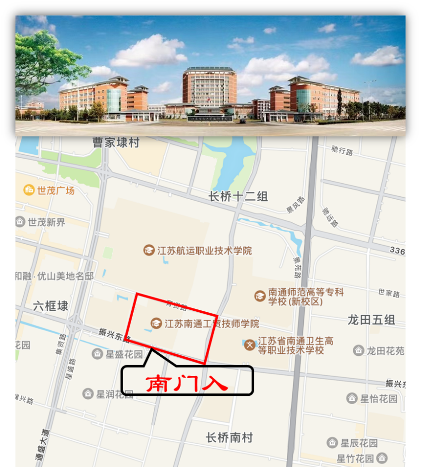 本次江蘇省公務(wù)員招錄面試南通考區(qū)考點(diǎn)設(shè)在江蘇省南通工貿(mào)技師學(xué)院(南通經(jīng)濟(jì)技術(shù)開發(fā)區(qū)振興東路296號(hào)),請(qǐng)從南大門進(jìn)校。具體如圖所示: