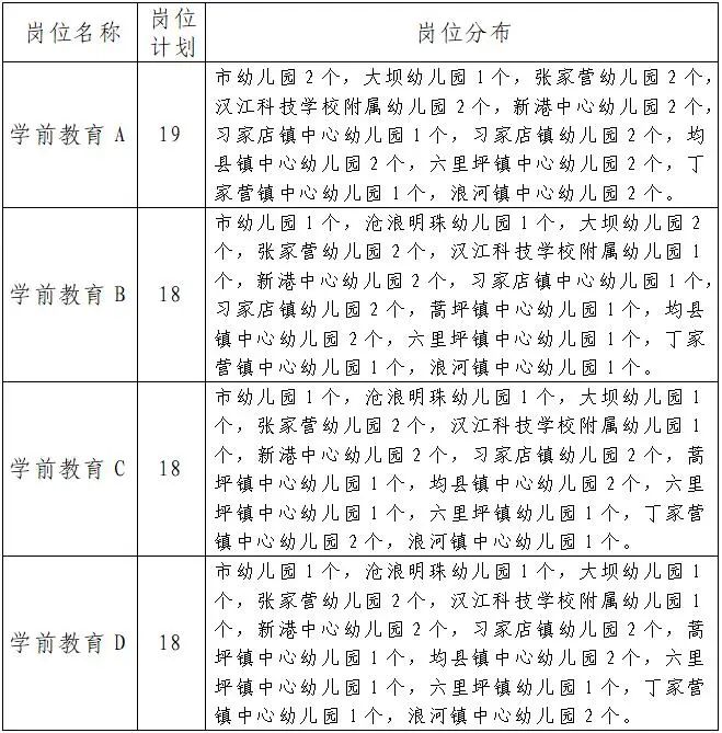 丹江口市2023年教師招聘崗位表
