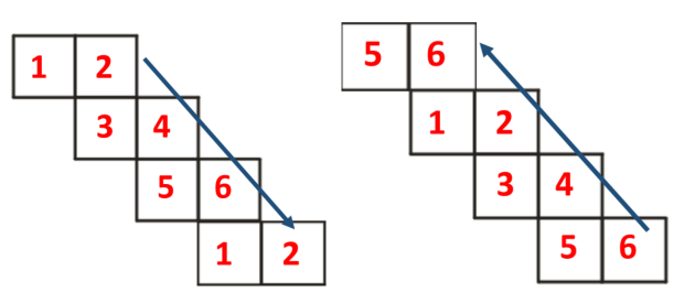 上圖中面1、2可以直接下臺階到達(dá)面5、6的下方,變成新的2-2-2式,上圖中面5、6可以直接上臺階到達(dá)面1、2的上方,變成新的2-2-2式。