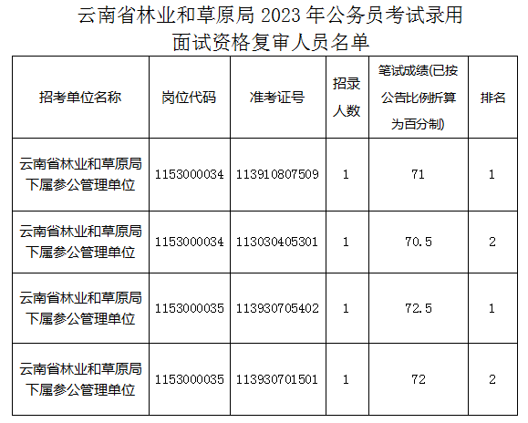 云南省林業(yè)和草原局2023年公務(wù)員考試錄用面試資格復(fù)審有關(guān)事項(xiàng)公告