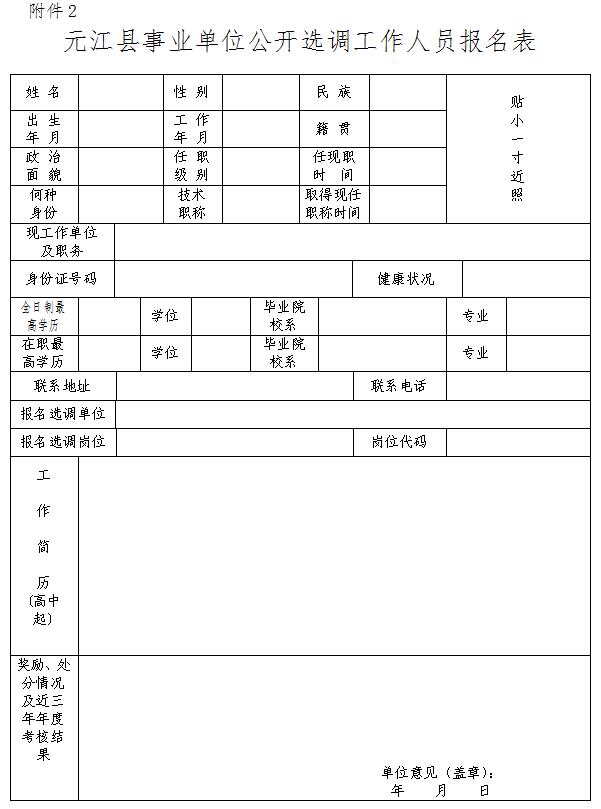 2.元江縣事業(yè)單位公開選調(diào)工作人員報名表