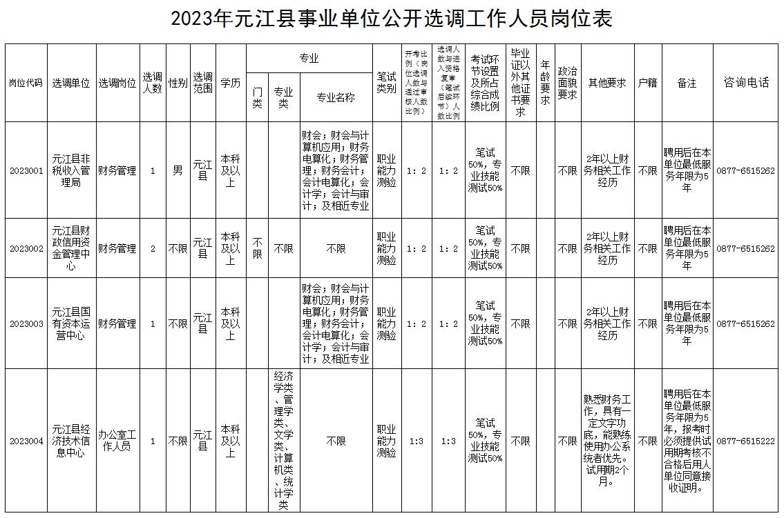 附件:1.2023年元江縣事業(yè)單位公開選調(diào)工作人員崗位表