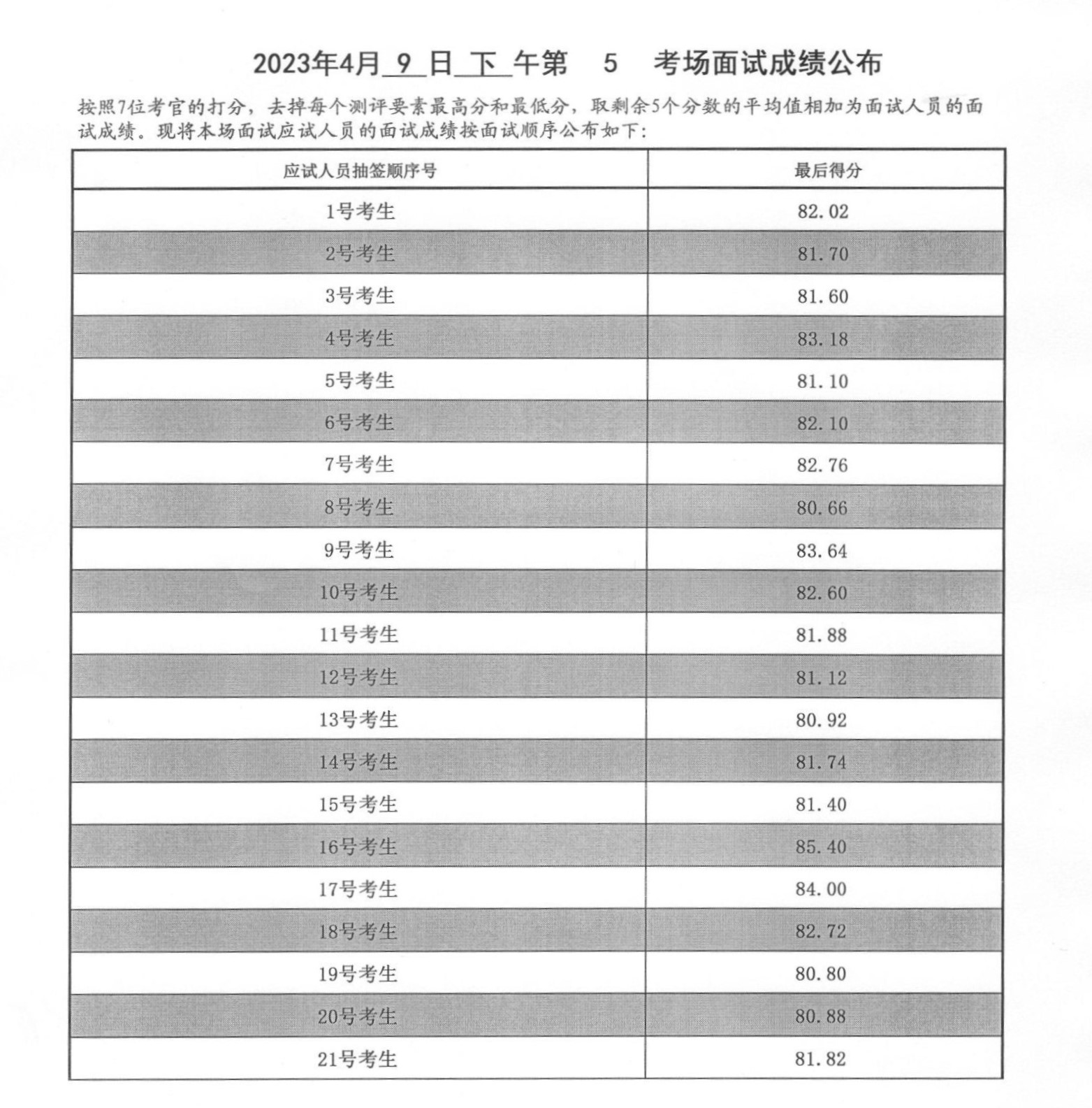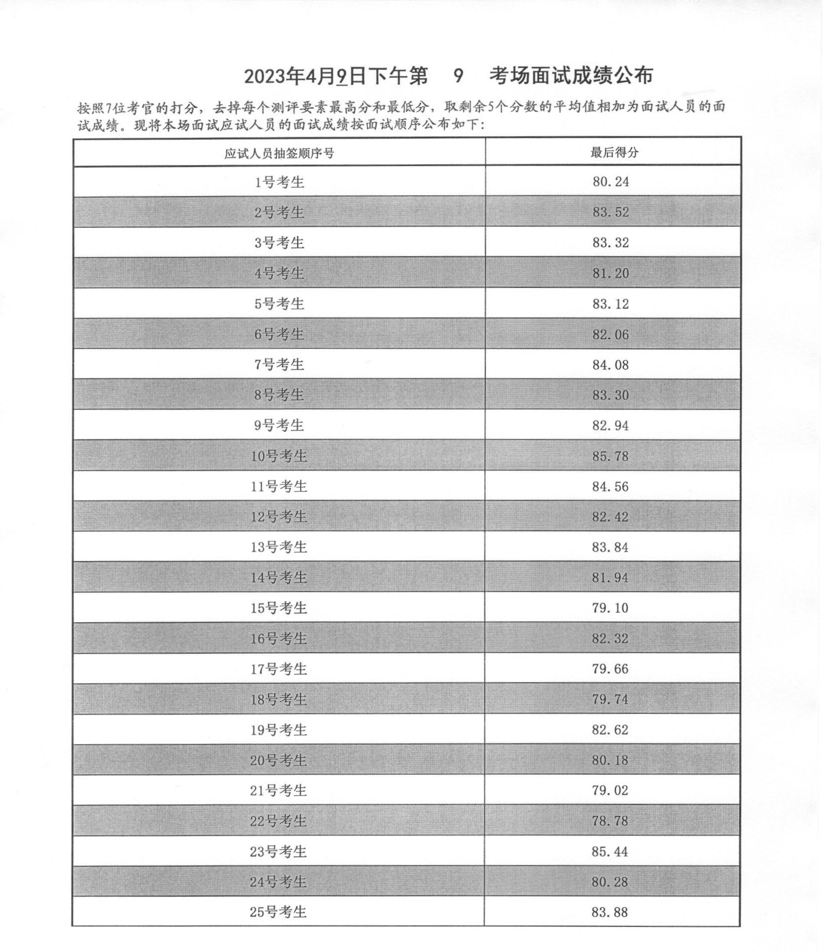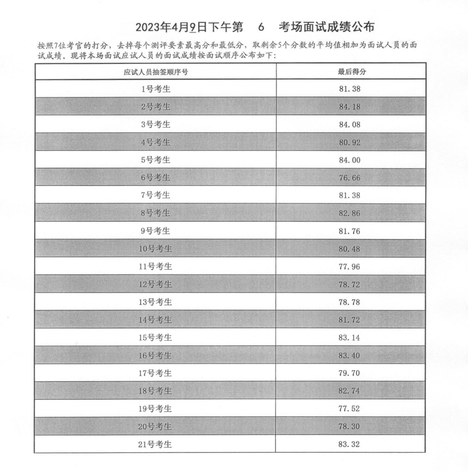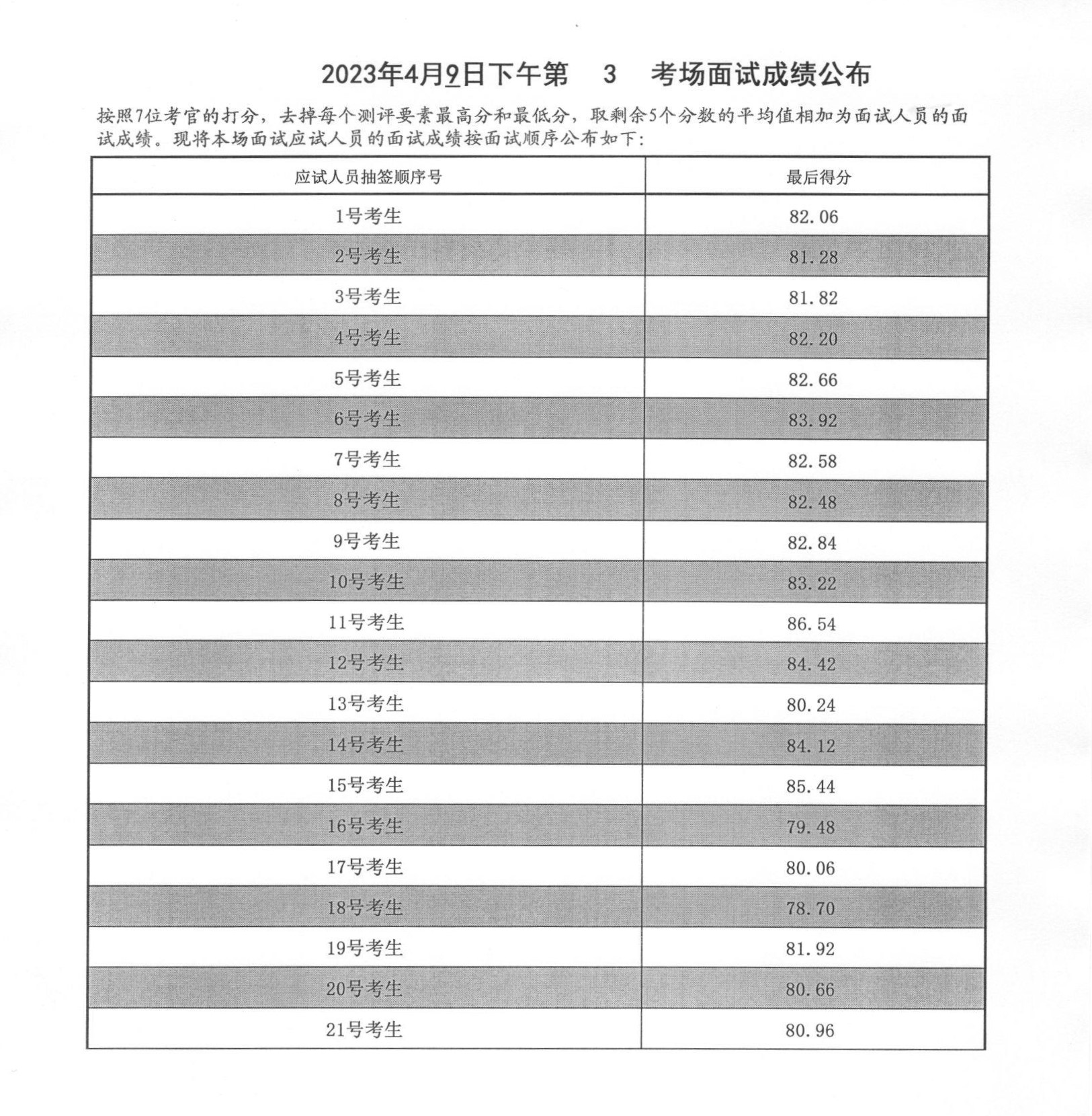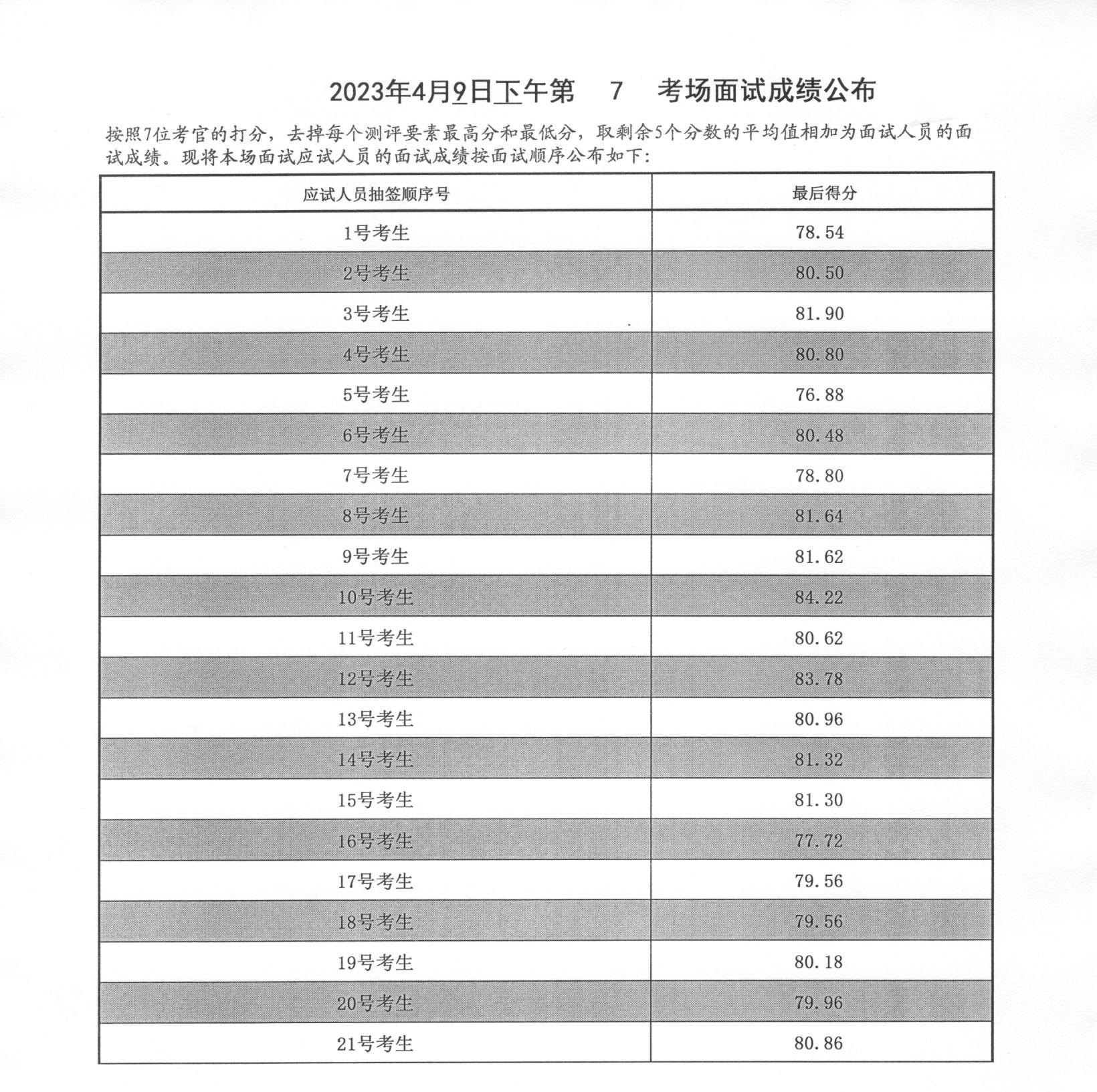2023年度泰安市各級機關招錄公務員面試成績(4月9日下午)