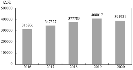 2020年我國社會消費品零售總額391981億元。按經(jīng)營地統(tǒng)計,城鎮(zhèn)消費品零售額339119億元,下降4.0%;鄉(xiāng)村消費品零售額52862億元,下降3.2%。按消費類型統(tǒng)計,商品零售額352453億元,下降2.3%;餐飲收入額39527億元,下降16.6%。