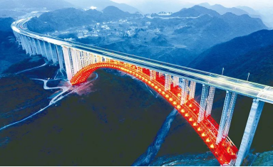 中國(guó)式現(xiàn)代化是全體人民共同富裕的現(xiàn)代化,追求的是全體人民共同富裕。貴州省遵義市播州區(qū)平正仡佬族鄉(xiāng)團(tuán)結(jié)村,曾經(jīng)由于交通限制,發(fā)展十分落后。2022年12月,仁遵高速通車后,團(tuán)結(jié)村通過大發(fā)渠特大橋旁的落地互通道路與高速相連,有力促進(jìn)當(dāng)?shù)芈糜萎a(chǎn)業(yè)和特色農(nóng)業(yè)發(fā)展,為實(shí)施鄉(xiāng)村振興戰(zhàn)略注入強(qiáng)勁動(dòng)能。圖為2023年2月2日,夜幕下的大發(fā)渠特大橋。新華社記者歐東衢/攝