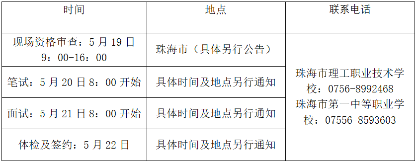 有關(guān)報(bào)考事項(xiàng)詳見《珠海市理工職業(yè)技術(shù)學(xué)校珠海市第一中等職業(yè)學(xué)校招聘事業(yè)編制報(bào)考指南》(附件3)。