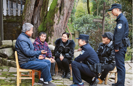 圖為2022年12月7日,浙江省臺州市公安局黃巖分局寧溪派出所民警走進(jìn)半山村,傾聽社情民意,宣傳平安知識,了解治安動態(tài),及時幫助群眾解決實際困難。中央政法委供圖