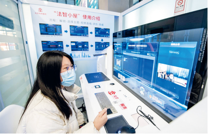 圖為2022年11月15日,群眾在北京城市副中心政務(wù)服務(wù)中心“法智小屋”通過平臺向律師視頻咨詢。北京市通州區(qū)司法局設(shè)置的“法智小屋”,可以網(wǎng)上對接法律咨詢、法治體檢、公證業(yè)務(wù)、法律援助等多種公共法律服務(wù)。中央政法委供圖