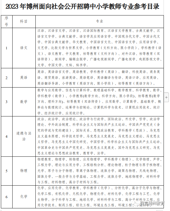 1.專業(yè)要求:詳見(jiàn)《博州2023年面向社會(huì)公開(kāi)招聘中小學(xué)幼兒園教師考試專業(yè)參考目錄》;