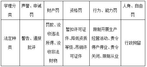 《行政處罰法》第九條規(guī)定:“行政處罰的種類:(一)警告、通報(bào)批評;(二)罰款、沒收違法所得、沒收非法財(cái)物;(三)暫扣許可證件、降低資質(zhì)等級、吊銷許可證件;(四)限制開展生產(chǎn)經(jīng)營活動、責(zé)令停產(chǎn)停業(yè)、責(zé)令關(guān)閉、限制從業(yè);(五)行政拘留;(六)法律、行政法規(guī)規(guī)定的其他行政處罰?!?/span>