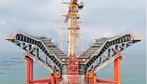 中央企業(yè)把主題教育與貫徹中央重大決策部署結(jié)合起來(lái),切實(shí)抓好服務(wù)構(gòu)建新發(fā)展格局戰(zhàn)略任務(wù)。黃茅??绾Mǖ朗抢^港珠澳大橋、深中通道之后,粵港澳大灣區(qū)又一跨海通道工程,由保利長(zhǎng)大承建的黃茅海大橋中塔于2023年4月18日順利封頂。圖為4月17日,工人在黃茅海跨海通道黃茅海大橋進(jìn)行墩柱基樁建設(shè)。新華社記者鄧華/攝