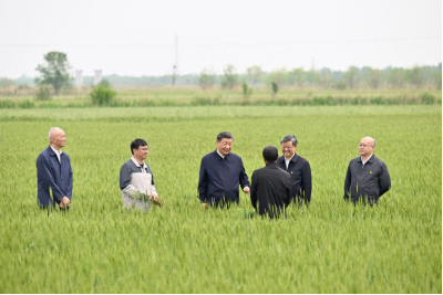 5月11日至12日,中共中央總書(shū)記、國(guó)家主席、中央軍委主席習(xí)近平在河北考察,并主持召開(kāi)深入推進(jìn)京津冀協(xié)同發(fā)展座談會(huì)。這是11日上午,習(xí)近平在滄州市黃驊市舊城鎮(zhèn)仙莊片區(qū)旱堿地麥田考察時(shí),同種植戶、農(nóng)技專家親切交流。新華社記者 殷博古 攝