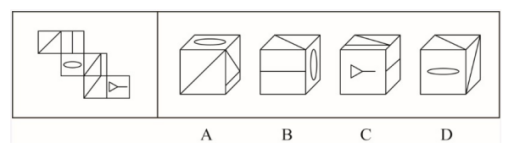 下面四個(gè)圖形中,只有一個(gè)是由左邊的四個(gè)圖形拼合(只能通過(guò)上、下、左、右平移)而成的,請(qǐng)把它找出來(lái):( )