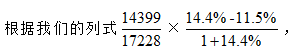 接下來(lái)由于14.4%-11.5%=2.9個(gè)百分點(diǎn),而1+14.4%>1,2.9個(gè)百分點(diǎn)除以一個(gè)大于1的數(shù)得到的結(jié)果必定小于2.9個(gè)百分點(diǎn),