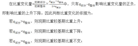 所以判斷比重變化的依據(jù)為:若部分變化率>整體變化率,則比重上升;