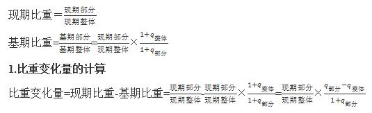 要想解決比重變化的問(wèn)題,首先要認(rèn)識(shí)現(xiàn)期比重和基期比重的基本公式:
