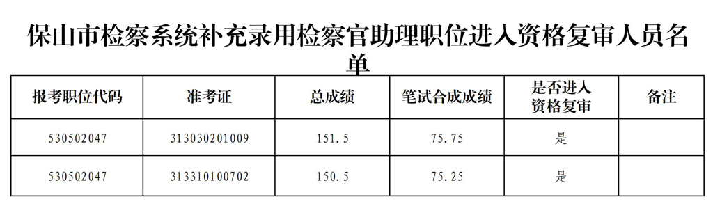 保山市檢察系統(tǒng)2023年度補(bǔ)充錄用檢察官助理職位公務(wù)員資格復(fù)審公告