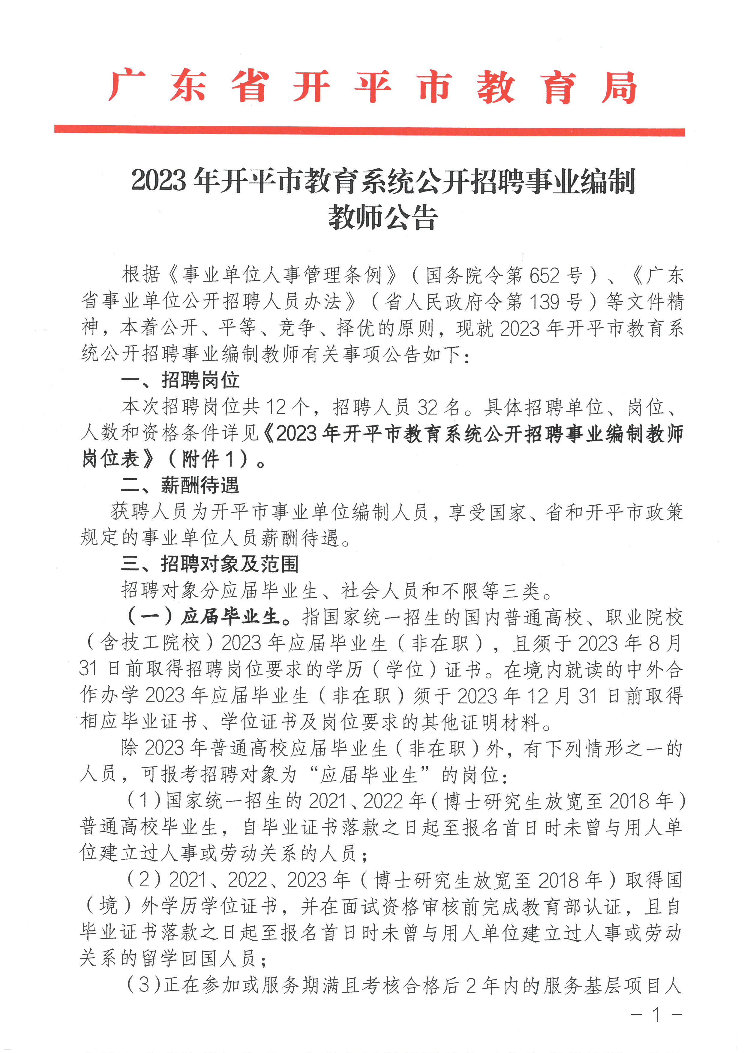 2023年開(kāi)平市教育系統(tǒng)公開(kāi)招聘事業(yè)編制教師公告