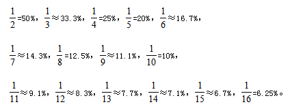 常見百分數(shù)與分數(shù)轉換:
