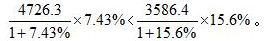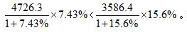 分母分別為1.0743和1.156,分母比較接近,忽略分母,比較4726.3×7.43%和3586.4×15.6%即可。4726.3是3586.4的一倍多,15.6%是7.43%的兩倍多,4726.3×7.43%<3586.4×15.6%,因此