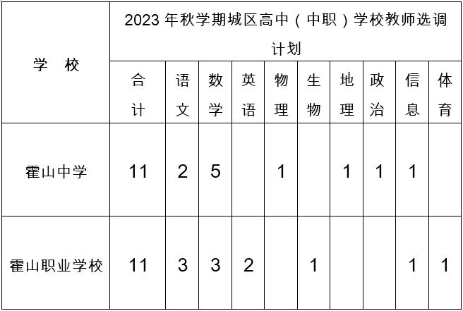 霍山縣2023年城區(qū)高中(中職)學(xué)校公開選調(diào)教師公告