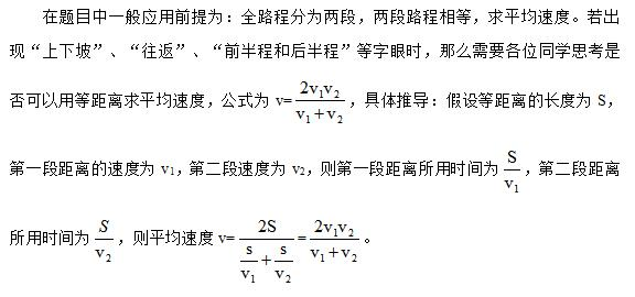 總結(jié)1:考試中,可以直接根據(jù)題干的描述列出相應(yīng)的等量關(guān)系來(lái)進(jìn)行求解,但是使用這種方法解析所用時(shí)間會(huì)更多。下面介紹一下等距離求平均速度的方法如何來(lái)求解整個(gè)題目。