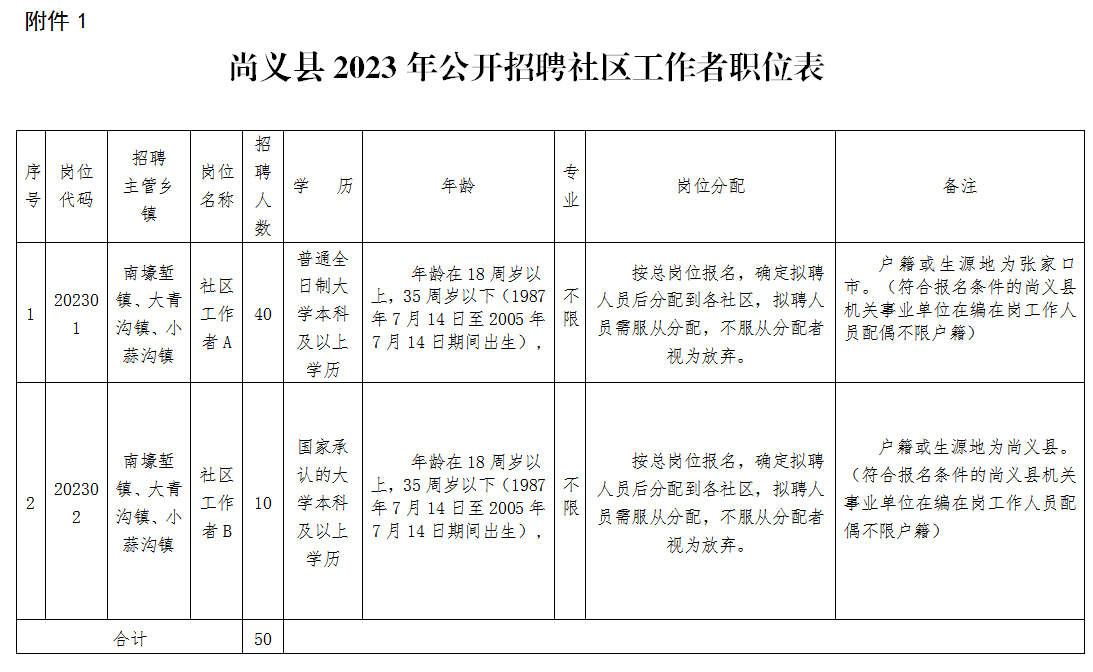 附件:1.尚義縣2023年公開招聘社區(qū)工作者職位表