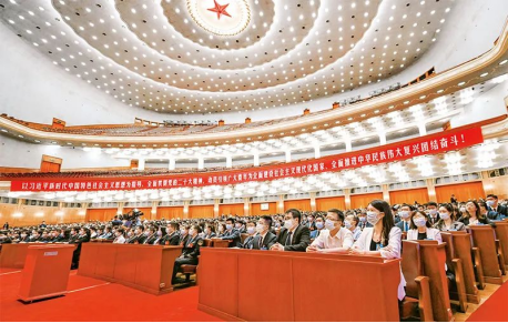 2023年6月22日上午,中國(guó)共產(chǎn)主義青年團(tuán)第十九次全國(guó)代表大會(huì)在北京人民大會(huì)堂閉幕。新華社記者 陳曄華/攝