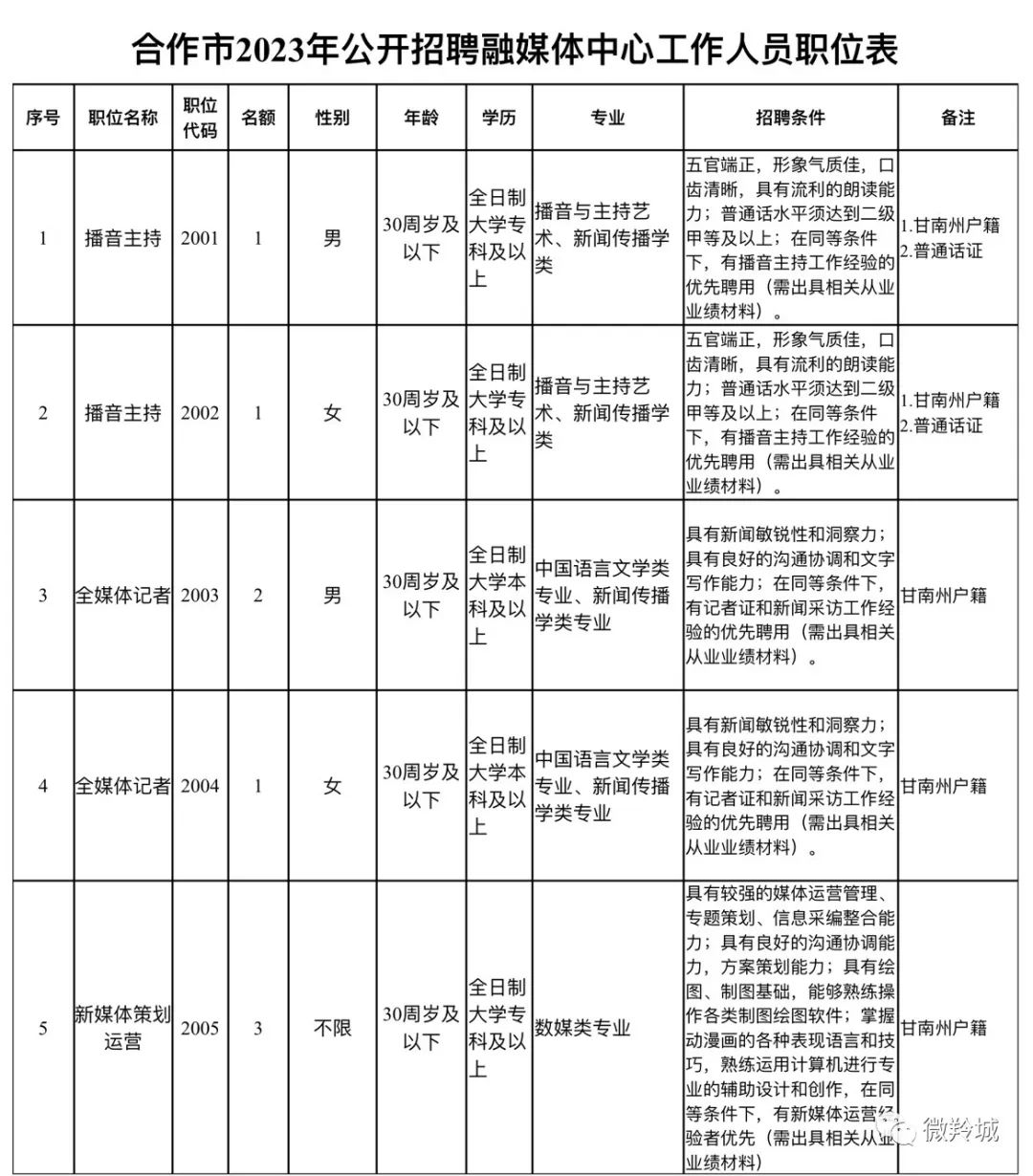 合作市2023年公開招聘融媒體中心工作人員公告