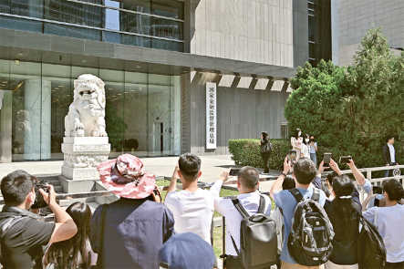 2023年5月18日,國家金融監(jiān)督管理總局正式掛牌,我國金融監(jiān)管機構(gòu)改革邁出重要一步。圖為當(dāng)日媒體記者在國家金融監(jiān)督管理總局門前拍攝。新華社記者 李鑫/攝