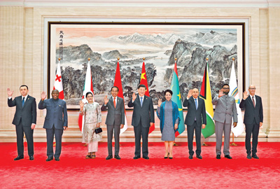 他們是:印度尼西亞總統(tǒng)佐科和夫人伊莉亞娜、毛里塔尼亞總統(tǒng)加茲瓦尼、布隆迪總統(tǒng)恩達伊施米耶、圭亞那總統(tǒng)阿里、格魯吉亞總理加里巴什維利以及國際大體聯(lián)代理主席艾德。