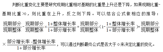 若部分增長率>整體增長率,則現(xiàn)期比重>基期比重,代表比重上升;