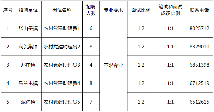 2023年計(jì)劃招聘農(nóng)村黨建助理員崗位5個(gè),共計(jì)33人,具體如下: