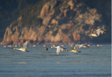 一群天鵝飛過閩江河口濕地上空(2023年1月31日攝)。新華社記者魏培全攝