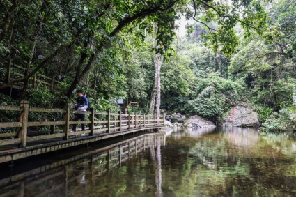 游客在海南熱帶雨林國家公園五指山片區(qū)的仙女潭游覽(2022年5月17日攝)。新華社記者張麗蕓攝