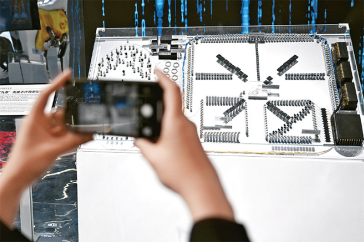 圖為2023年4月26日,觀眾在第二屆中國(安徽)科技創(chuàng)新成果轉(zhuǎn)化交易會上拍攝“九章”光量子計算原型機(jī)模型。本屆科交會的主題為“推動創(chuàng)新鏈產(chǎn)業(yè)鏈資金鏈人才鏈深度融合,提高科技成果轉(zhuǎn)化和產(chǎn)業(yè)化水平”。新華社記者 黃博涵/攝