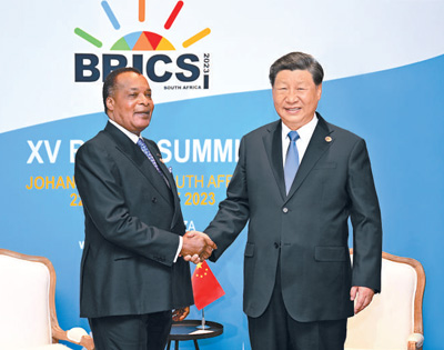 本報約翰內(nèi)斯堡8月24日電(記者萬宇、閆韞明)當(dāng)?shù)貢r間8月24日上午,國家主席習(xí)近平在約翰內(nèi)斯堡出席金磚國家領(lǐng)導(dǎo)人會晤期間會見剛果(布)總統(tǒng)薩蘇。