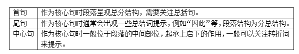 關鍵句主要有首句、尾句、中心句等。對于首句、尾句、中心句的重點關注目的是能夠快速掌握材料段落內(nèi)容,提高閱讀效率。