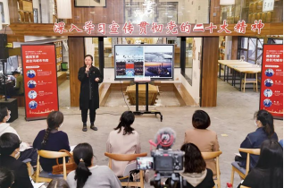 2022年11月18日,浙江省“六學六進六爭先”巡回宣講團走進桐鄉(xiāng)市開發(fā)區(qū)(高橋街道)伯鴻城市書房,以沙龍訪談的形式,向群眾宣傳黨的二十大精神。桐鄉(xiāng)市委宣傳部供圖
