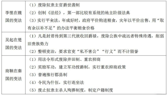改革開放是我國經(jīng)濟(jì)發(fā)展的強(qiáng)大動(dòng)力,是實(shí)現(xiàn)人民生活富裕的關(guān)鍵一招和必然選擇。在古代,尤其是戰(zhàn)國時(shí)期,群雄并起,各國為了實(shí)現(xiàn)富國強(qiáng)兵,紛紛力主變法。在事業(yè)單位考試中,也經(jīng)常考察變法的具體措施。下面將戰(zhàn)國時(shí)期的三大變法匯總到一起,幫助大家進(jìn)行對(duì)比記憶。