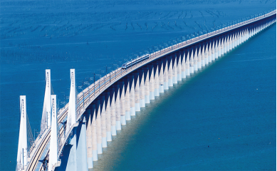 2023年9月28日,中國首條時(shí)速350公里跨海高鐵——福廈高鐵正式開通運(yùn)營。圖為一列運(yùn)行試驗(yàn)車組駛過福廈高鐵湄洲灣跨海大橋(9月19日攝,無人機(jī)照片)。新華社記者 魏培全/攝