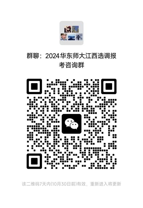 掃描“2024華東師范大學江西選調(diào)報考咨詢?nèi)骸倍S碼進群,(若二維碼失效可聯(lián)系李老師13844200612,并備注“姓名-院系-學號-江西選調(diào)生”及時入群)。