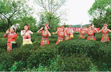 圖為2023年4月3日,在福建省南平市建陽區(qū)革命老區(qū)漳墩鎮(zhèn),畬族群眾在有300多年歷史的茶園喊山祭茶。福建日報社供圖