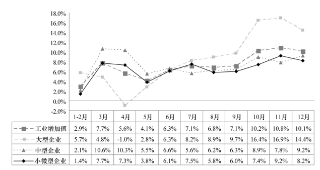 2012年某省規(guī)模以上工業(yè)增加值同比增速情況