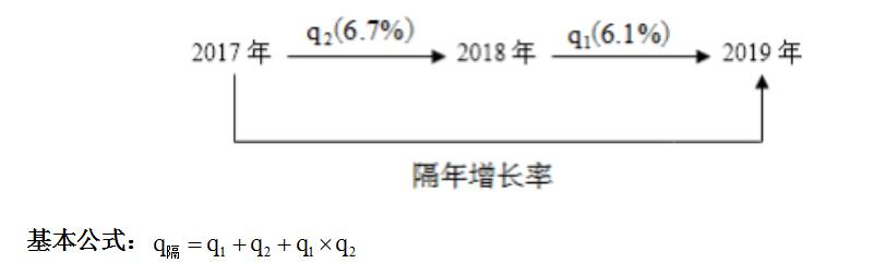 隔年增長是基于一定時間跨度上,而進行的基本數(shù)據(jù)關系的考查,一般常見的時間跨度為3個統(tǒng)計周期,例如2021年-2023年,這一個統(tǒng)計周期內(nèi)會產(chǎn)生統(tǒng)計項目數(shù)據(jù)的增減變化。由于統(tǒng)計周期的時間單位不同,也可求隔月增長、隔季度增長。