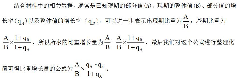 第一步:根據(jù)部分增長率和整體增長率的大小關系,先判斷比重的變化情況,排除錯誤答案;