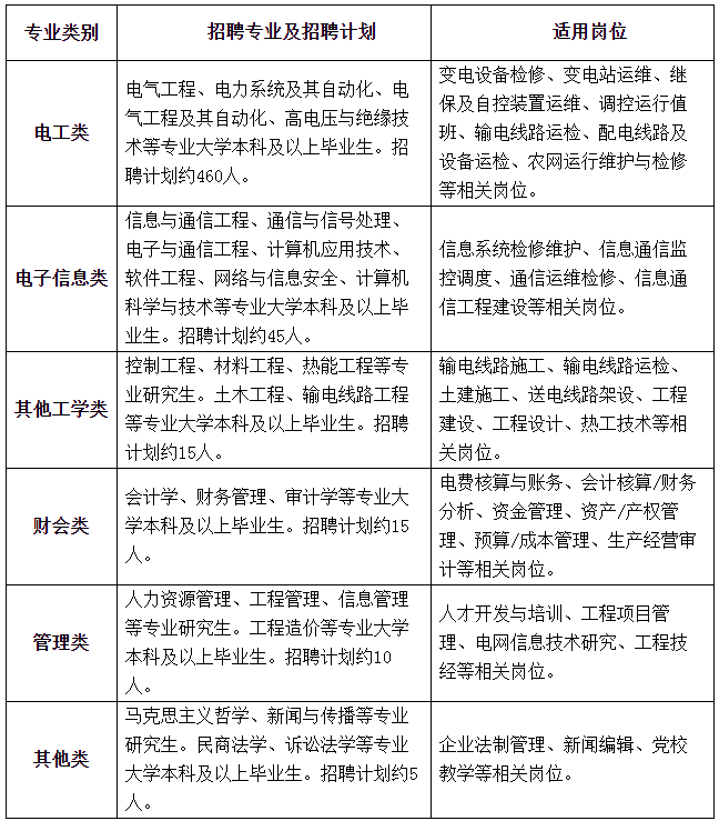 招聘專業(yè)類別為電工類、電子信息類、其他工學(xué)類、財(cái)會(huì)類、管理類及其他專業(yè),招聘專業(yè)是指主修專業(yè),不包含輔修專業(yè)。因上級(jí)單位尚未核定下達(dá)2024年招聘計(jì)劃,最終招聘數(shù)量將根據(jù)上級(jí)單位核定情況相應(yīng)調(diào)整。第一批招聘計(jì)劃(含提前批招聘計(jì)劃)暫定如下:
