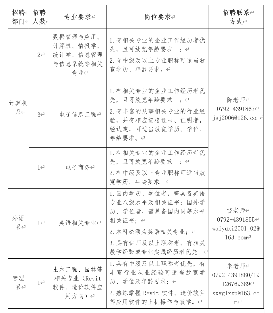 因?qū)W院教育事業(yè)發(fā)展需要,現(xiàn)面向社會(huì)公開招聘教學(xué)崗人員若干,具體如下: